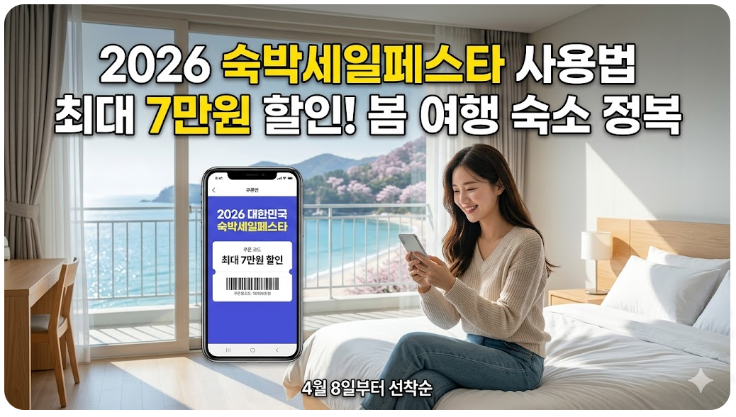 2026 숙박세일페스타 사용법 정보를 찾고 계신가요? 4월 8일부터 시작되는 역대급 숙박 할인 혜택과 쿠폰 발급 방법, 그리고 예약 성공을 위한 꿀팁까지 상세히 정리해 드립니다. 이번 기회에 비수도권의 보석 같은 숙소들을 합리적인 가격으로 예약하여 잊지 못할 봄 여행을 계획해 보시길 바랍니다.